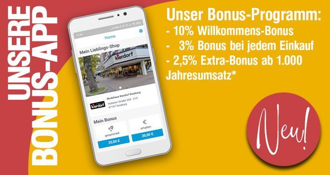 Nur mit Kundenkarte oder Bonus-App von MODE KIERDORF Duisburg-Neumühl, MODE KIERDORF Mülheim-Saarn, LANTERMANN Oberhausen-Sterkrade und FISCHEDICK Dinslaken!